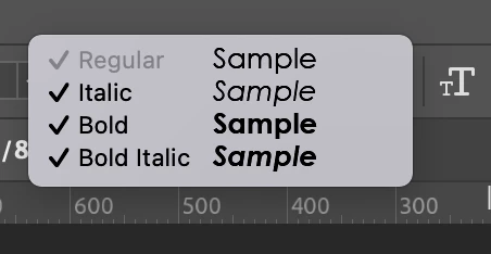 "Hello, there is a checkmark above the options of the font I selected in Adobe Photoshop, and I can't change it to a different text style. Can you help me?" "I would be very happy if you could explain it with images."