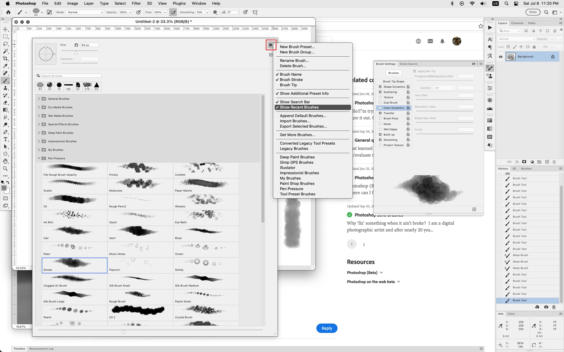 Can someone tell me how to get the same Brushes pop-up palette on Beta as that which shows up on PS 24.0.0 and earlier versions please?