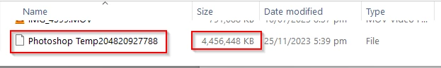 I have very little open and still have a 5gb temp file
