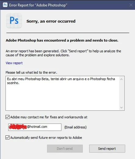 Yes, my Adobe ID email here is the same used to sign in to creative cloud. Now, I did set it up to automatically send crash reports each time it happens. Obviously it is not working right so is there a way I can revert that setting and send them manually?