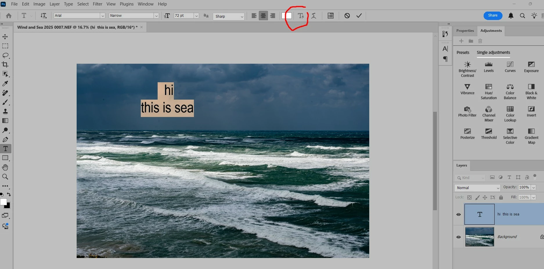 - Using a Point Text layer (not Paragraph Text)