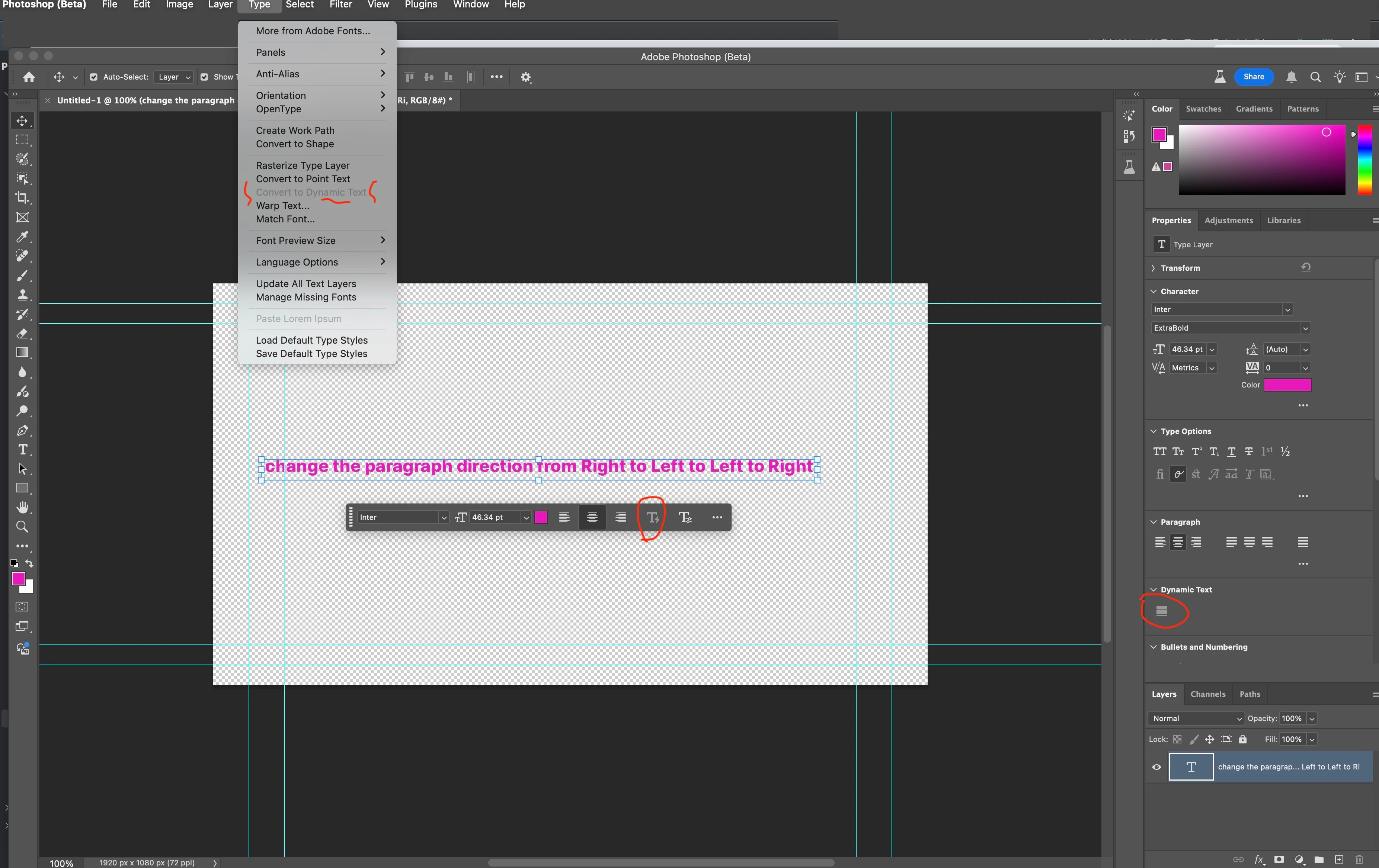 Photoshop Beta - Dynamic Text button is grayed out