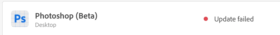 Can't update Photoshop (Beta) few weeks. Start update and after some few % of update it failed! I use Macbook Air and MacOS Ventura 13.5. What to do?