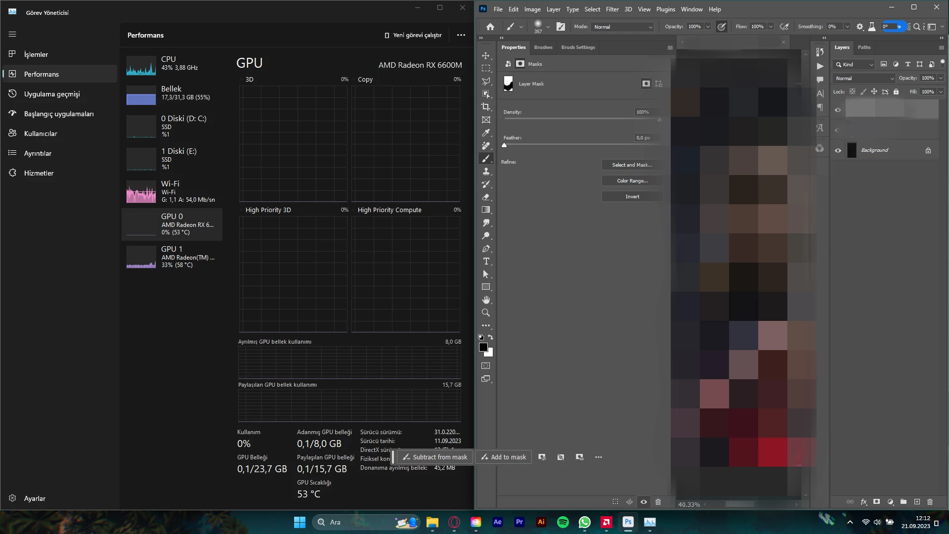 My system is an AMD-based laptop with two graphics cards (AMD Radeon(TM) Graphics and AMD Radeon RX6600M) When I open Photoshop, my external graphics card does not work and I have constant crashes. I have updated all drivers, downgraded and upgraded Photoshop versions, but the result is the same. After the incoming updates, Photoshop's optimisation with my laptop has become terrible and my work has been disrupted...