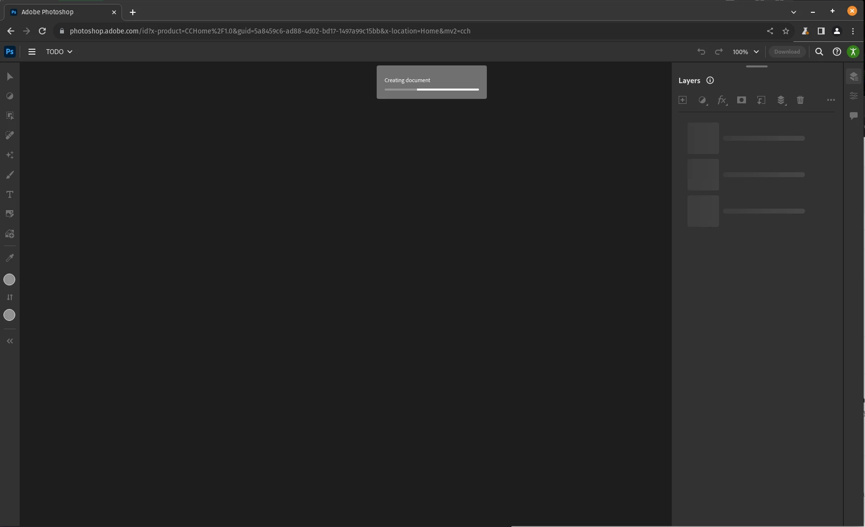As a user of Photoshop on the desktop and iPad, I don't find many occassions to use Photoshop Web. The one time I would find it useful is when I'm on my little Linux box (Pop!_OS). However, it doesn't seem to work in either Chrome (Chromium) or Firefox. The web app hangs when trying to load or create a document.
