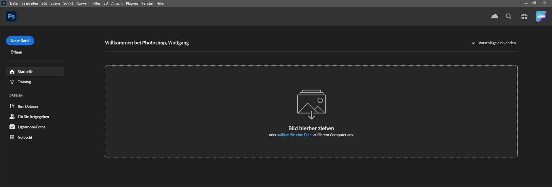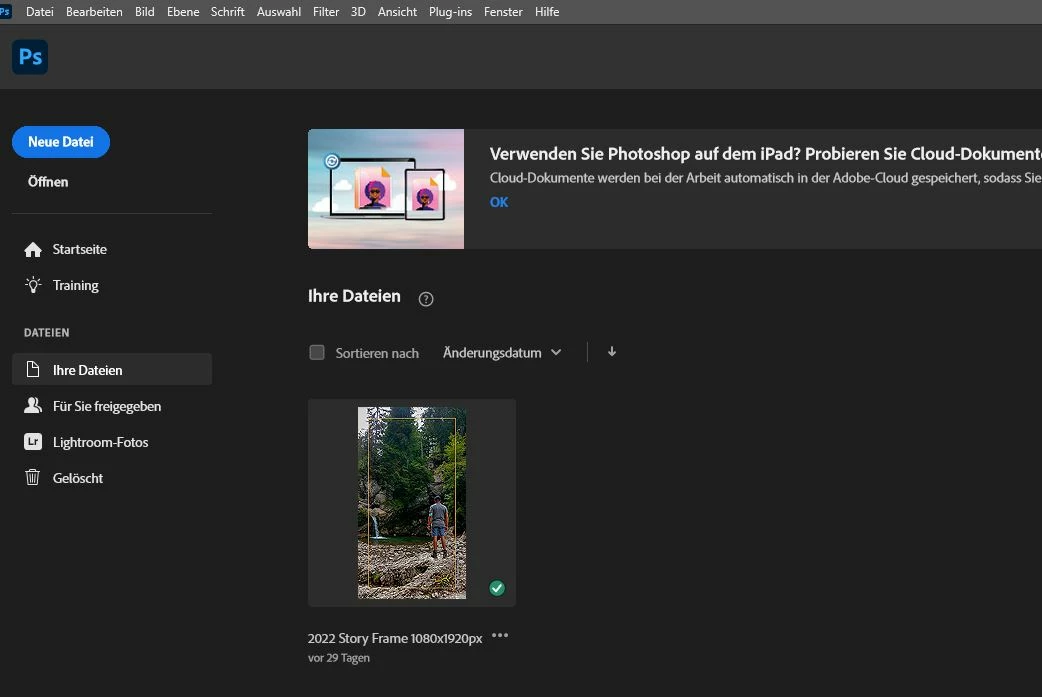 Photoshop Start-Window and current version 23.4.2.