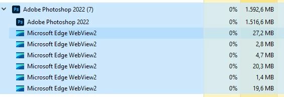And: What the hell is (since current version (23.4.2.) the need of 6 instances of Microsoft Edge WebView2s (3) doing in there, while opening/running PS???