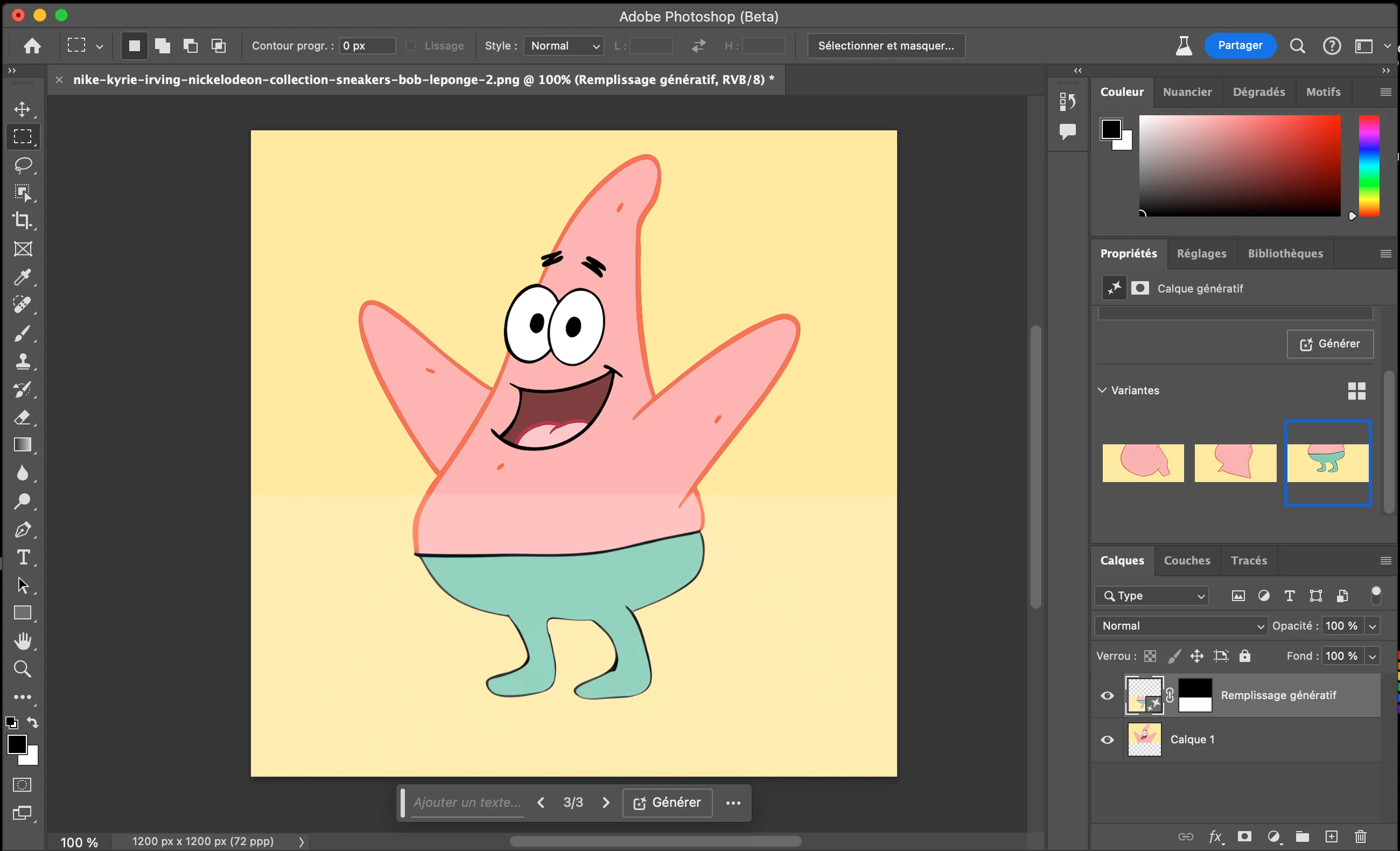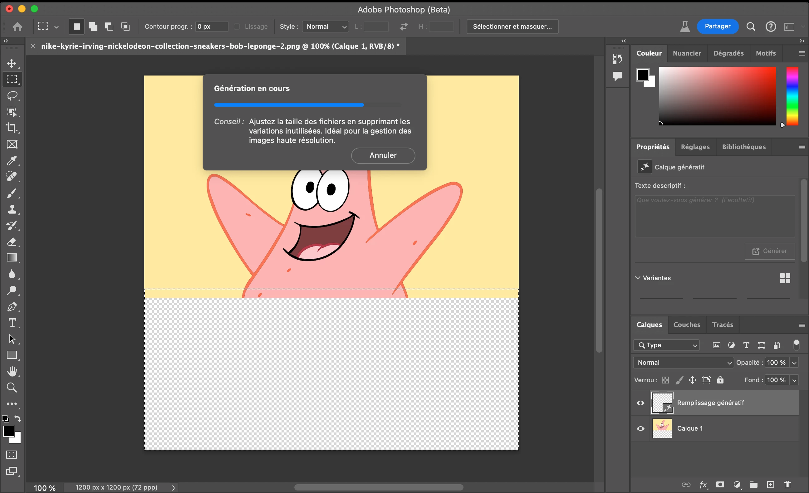 Problème récurrent avec Photoshop Beta : différence de couleur avec utilisation du remplissage génér