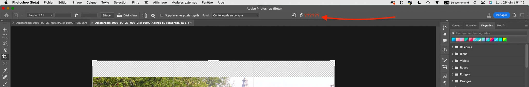 PS béta 24.7.0 Affichage caché des option en cas de recadrage