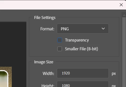 Actual result: The "Format" selector does not respond to mouse clicks and does not open the drop-down menu. Checking or unchecking "Transparency" and "8 bit" makes no difference.