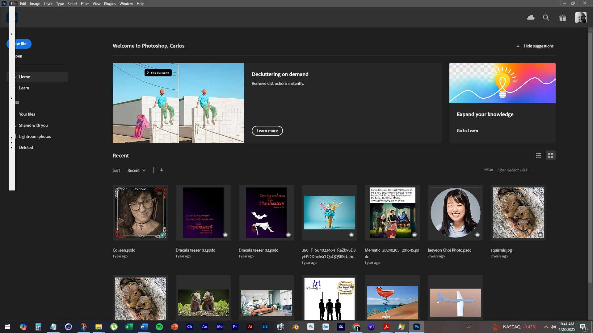 No files were open. I worked on other files yesterday but I had since closed them, but not PS.
