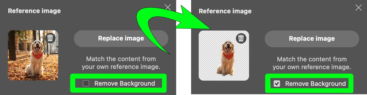 Generative Fill -> Reference image -> Remove Background on Reference Image fly-out
