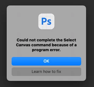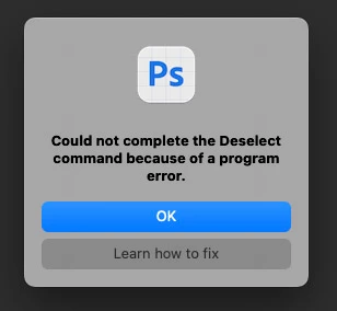 When I hit "Select All" or "Deselect" I get and error — "Could not complete the Select Canvas command because of a program error."