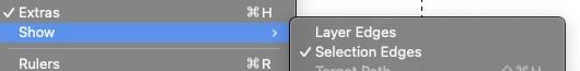 If you mean that the "marching ants" outline of a selection is not showing, go to the View menu and make sure "Extras" is checked. If it is, go to View menu/Show and make sure "Selection Edges" is checked as well.
