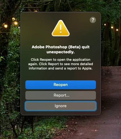 The same fault (unable to send photo from LRC to PS Beta) was rectified yesterday following an update to LR Classic, but following todays update of PS Beta, results in PS Beta crashing with the following result: