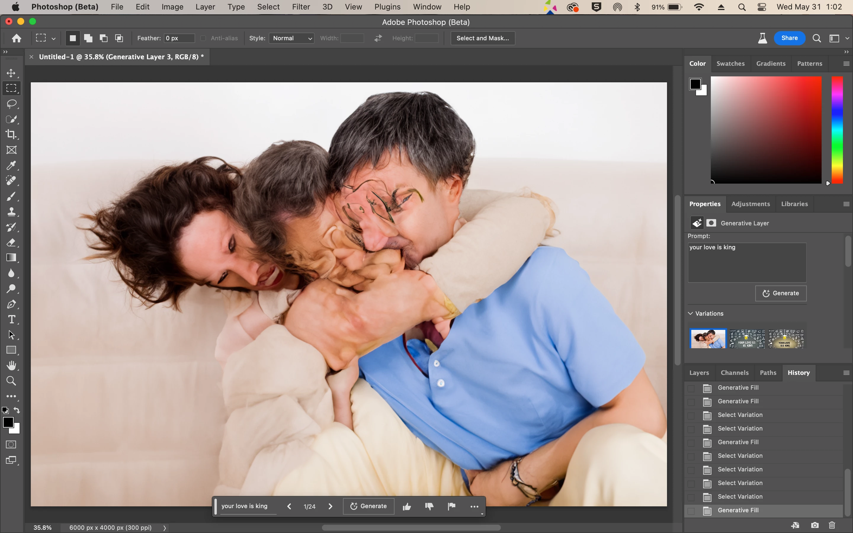 I did a quick try, how well will Generated Fill change the colour of model's top from pink into black  -good work.