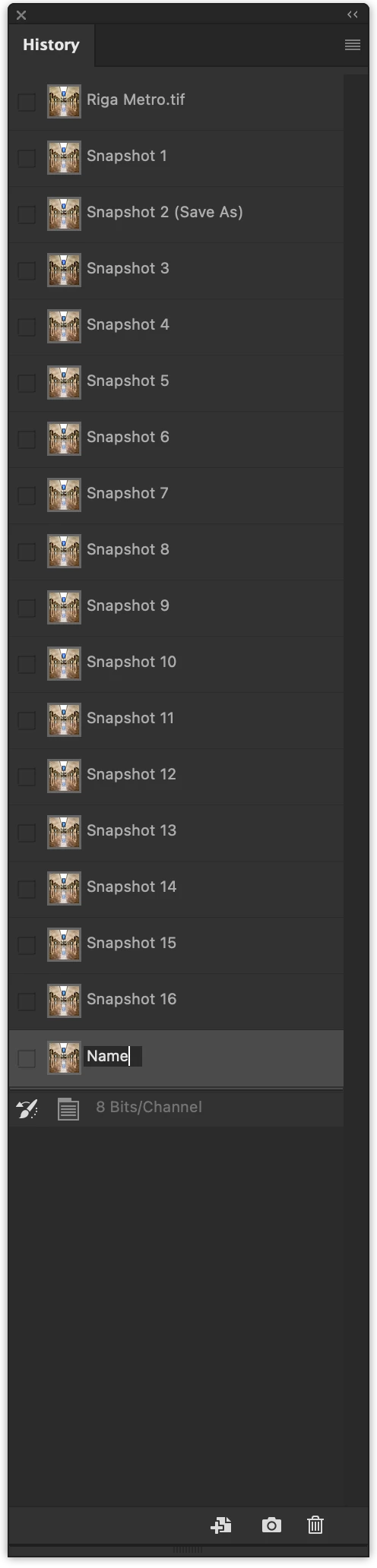 Dear Adobe! The Photoshop does not offer to set a name for the new snapshot, with the "alt" pressed, like, for example, a new layer, or channel. This interferes and creates confusion when recording actions. The name can only be changed for an already created snapshot.