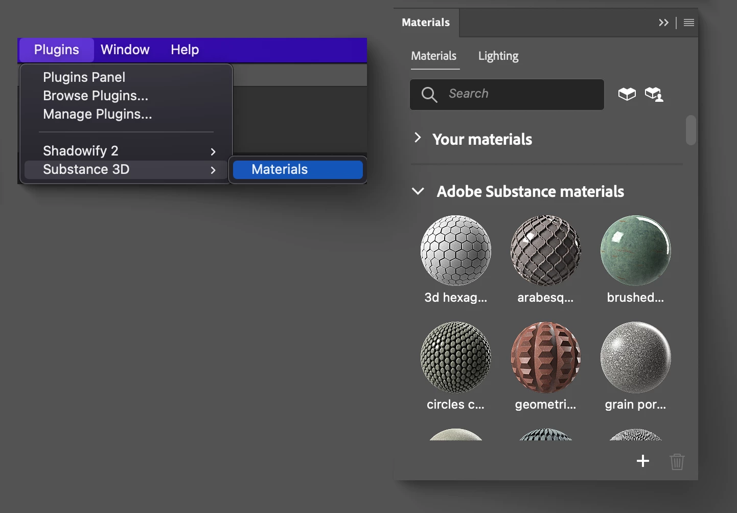 If you haven't used it and would like to learn more, see Substance 3D materials for Photoshop.