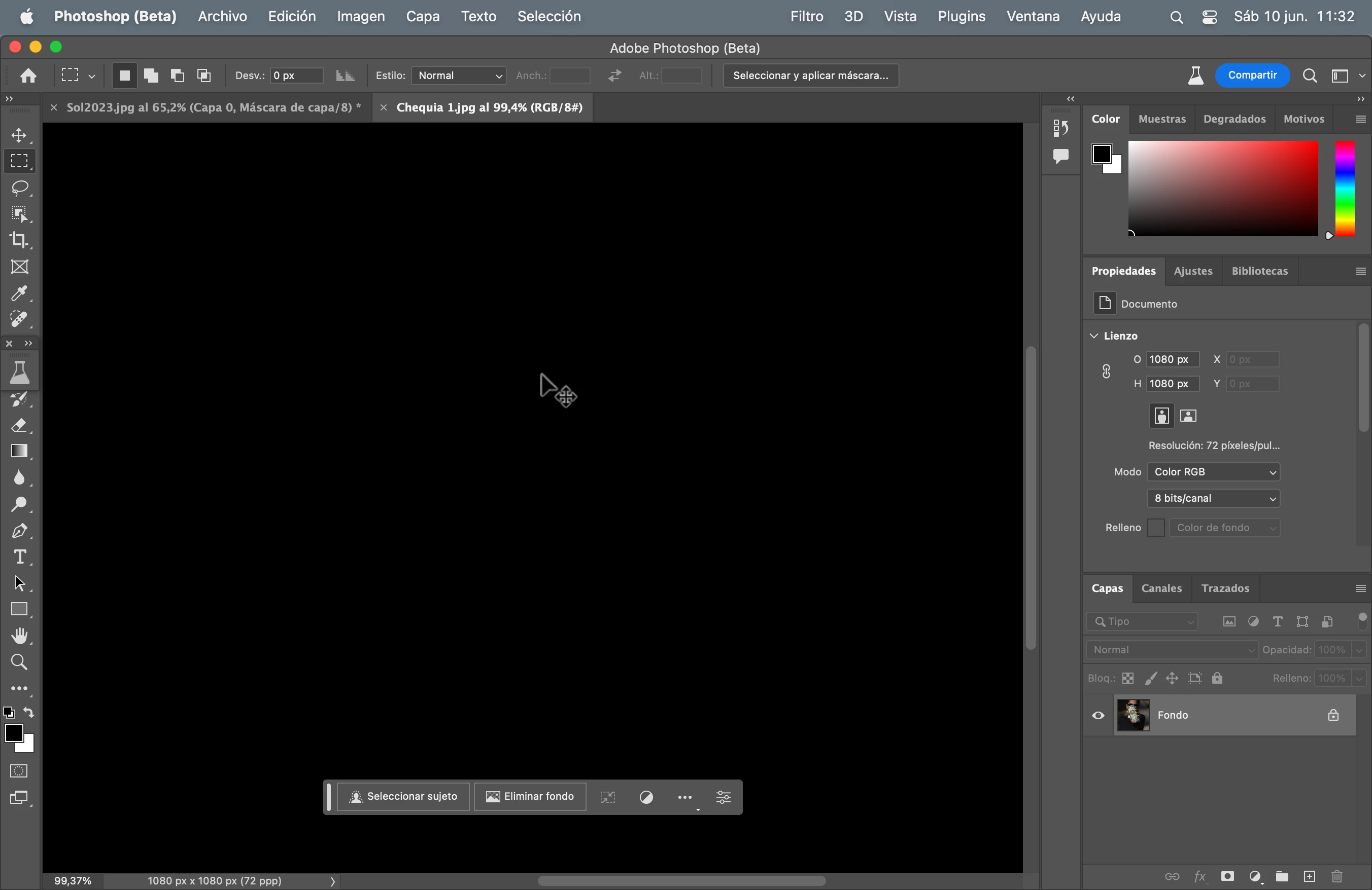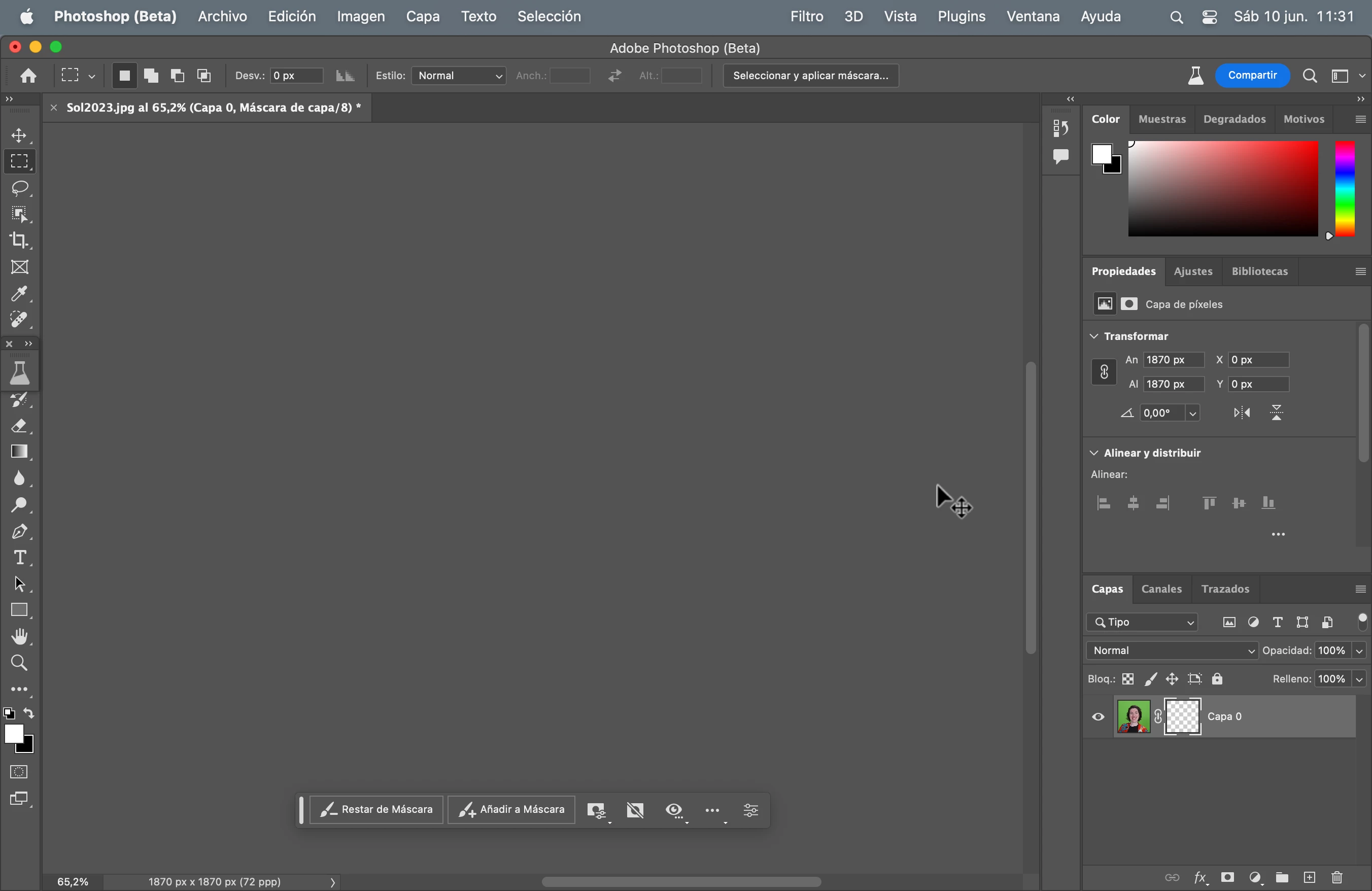Puedo trabajar sobre ella, porq lo veo en la miniatura pero no me muestra la iagen en la ventana principal, no es un problema de zoom, no es un problema de desplazamiento simplemente no está. Intenté abrir y cerrar el archivo varias veces, probé abrir otras imagenes, y simplemente no están visibles.