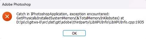 GetPhysically Installed SystemMemory(&TotalMemoryInKilobytes) at D:\js\ci\gitws-0\src\dist\git\adobe\thirdparty\LibXPUInfo\LibXPUInfo.cpp:1935