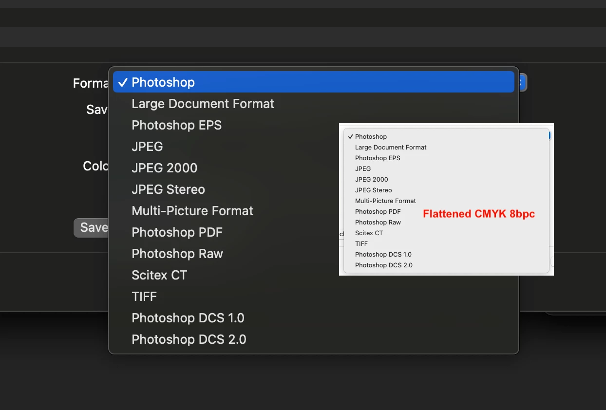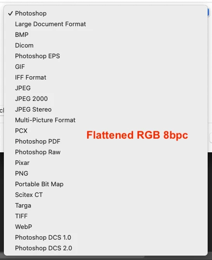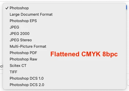 You didn’t answer my question regarding colour mode. Here are examples of flattened, 8bpc RGB and CMYK legacy Save As file formats: