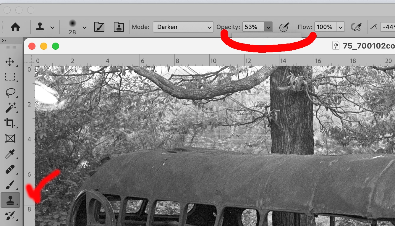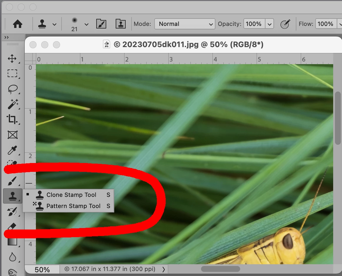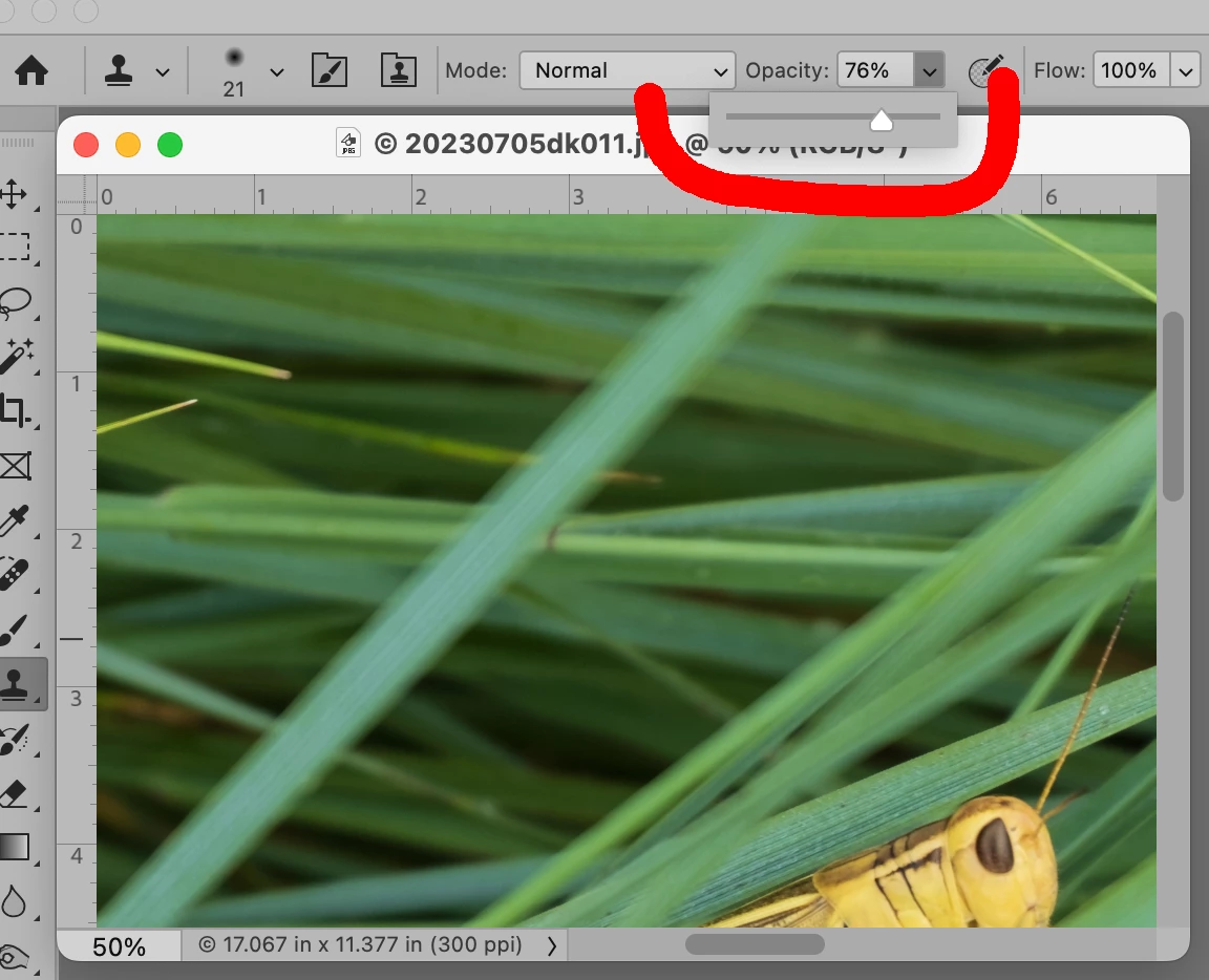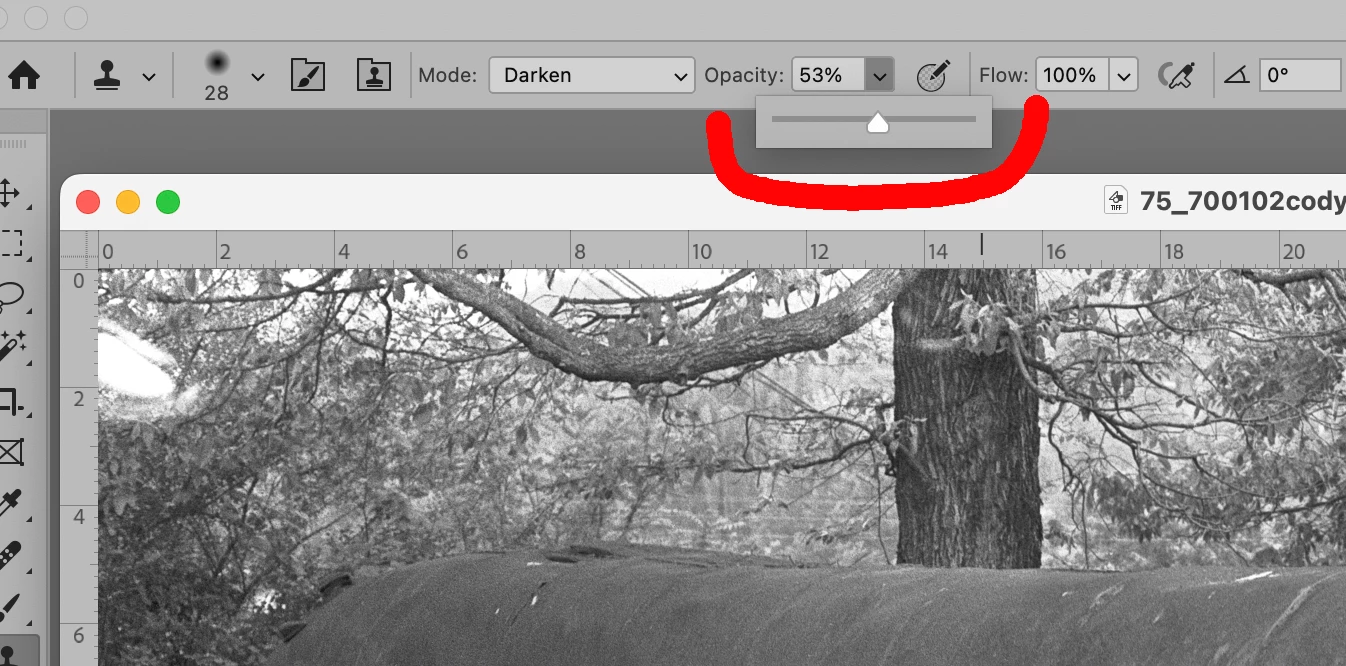 Tool option box shows under photo