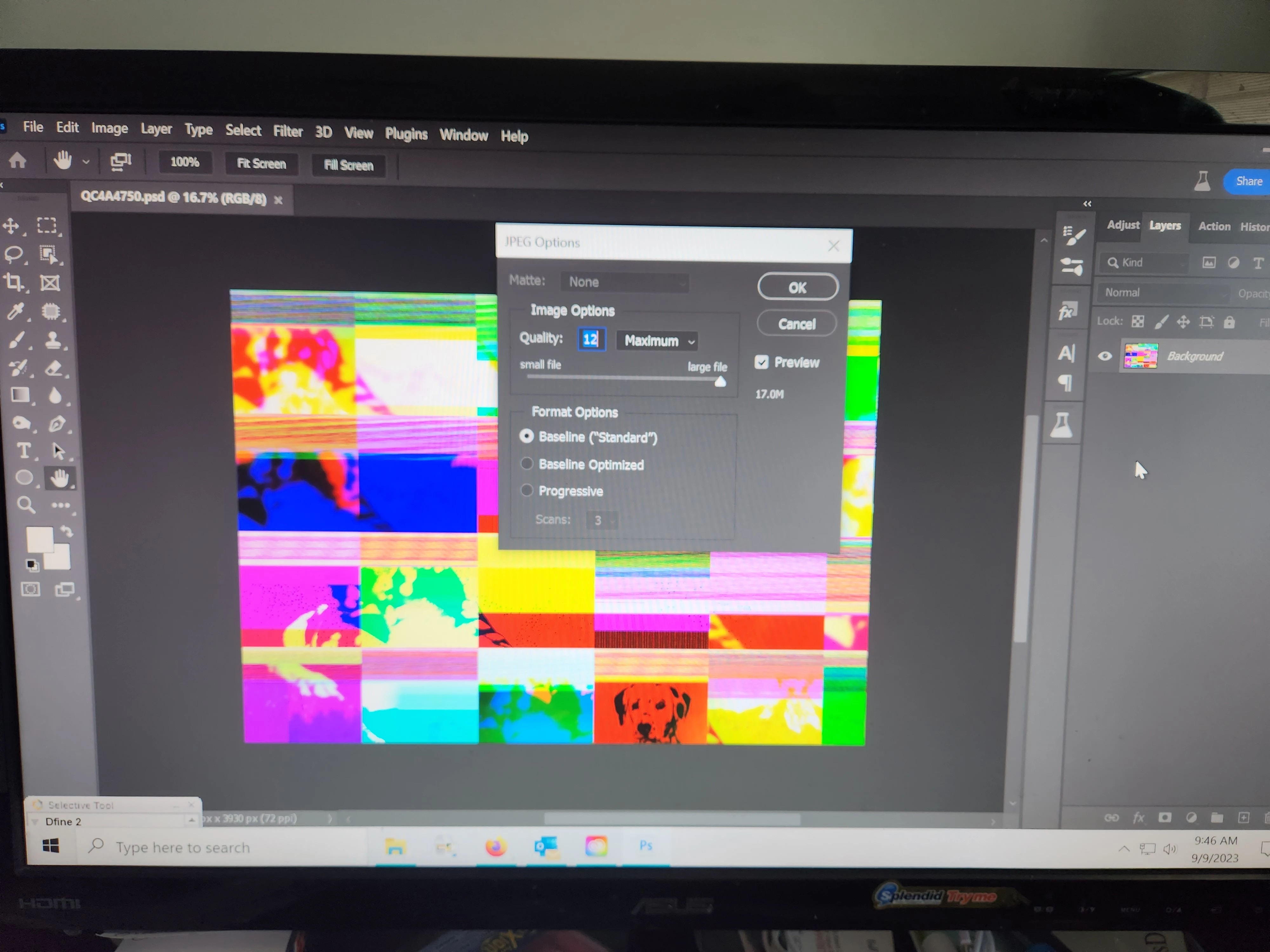 unable to save, image transformed into abstract crazy colors, using PS Beta 25.1