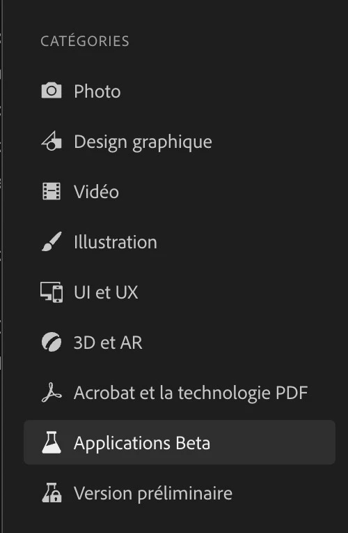 PS Beta is lower on the left handside panel