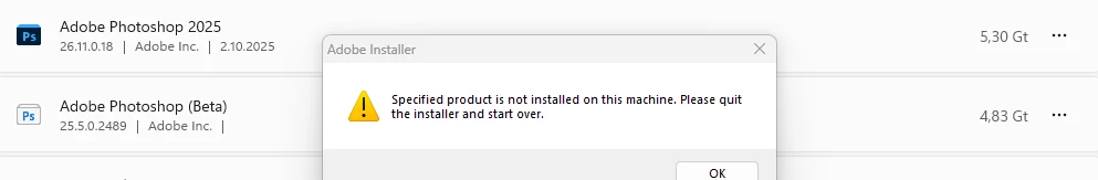 Uninstall Photoshop Beta