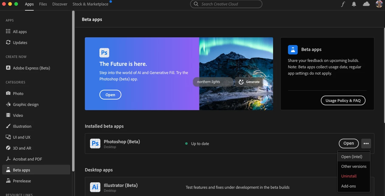 Go to the Creative Cloud desktop app>Apps Tab>Beta.
