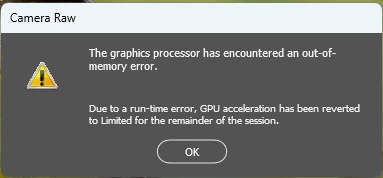 Updated today to new release of Camera Raw and GPU started failing