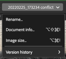 Versioning in Photoshop web can be found in the document name menu at the top > Version history :