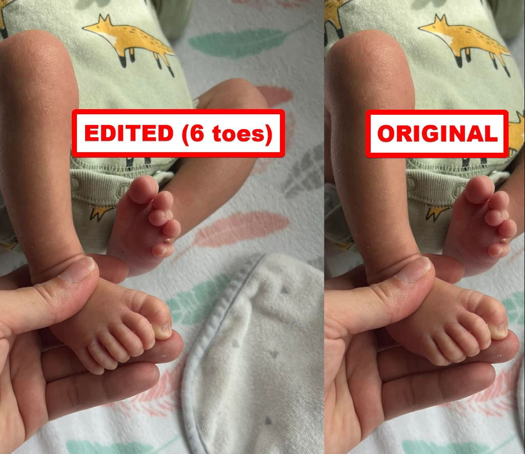 Even after so many months, generative fill still gives me headaches with its false-positive warnings. I was trying to add a 6th toe to the photo on the right. All my attempts resulted in a violation, and it would not generate! "6 toes", "six toes", etc. Eventually, I thought of using the medical term polydactyly, which worked fine!