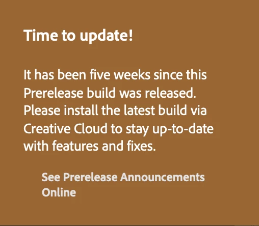 • Beta Update check - Now when there's a new version of the Photoshop (beta) app available, there will be an in-app notification that lets you update easily.