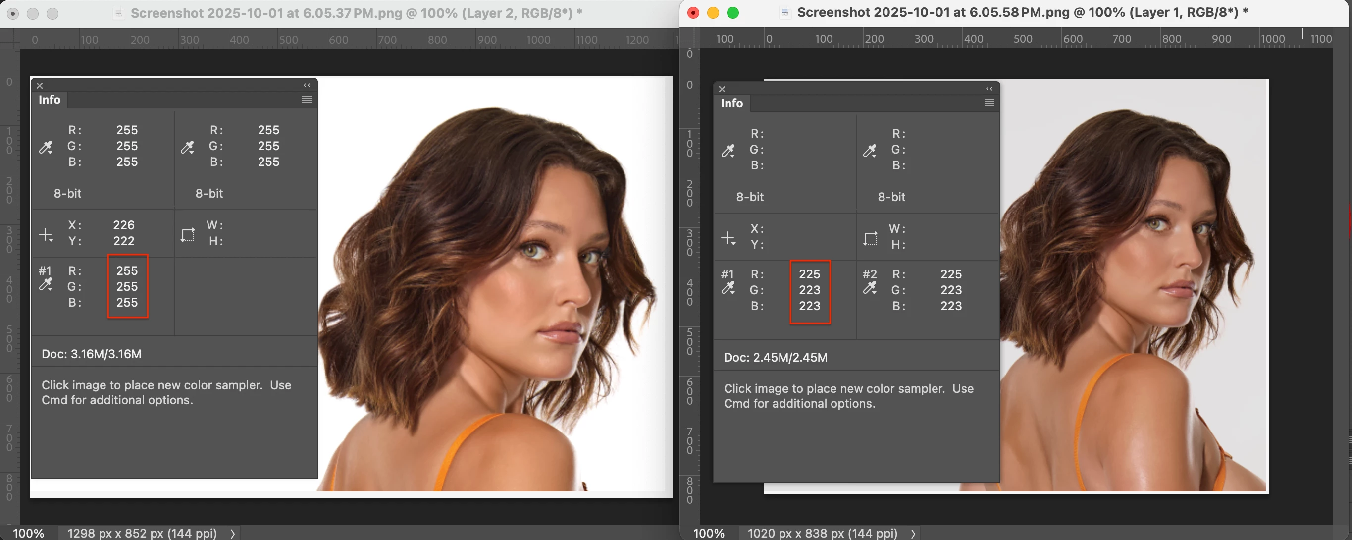 This is for RGB and CMYK images. The first shot is the original, and the second shot is trying to select the white point.