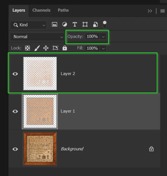 If you zoom the screenshot you can see the pattern and the other with the black layer underneath with no pattern.