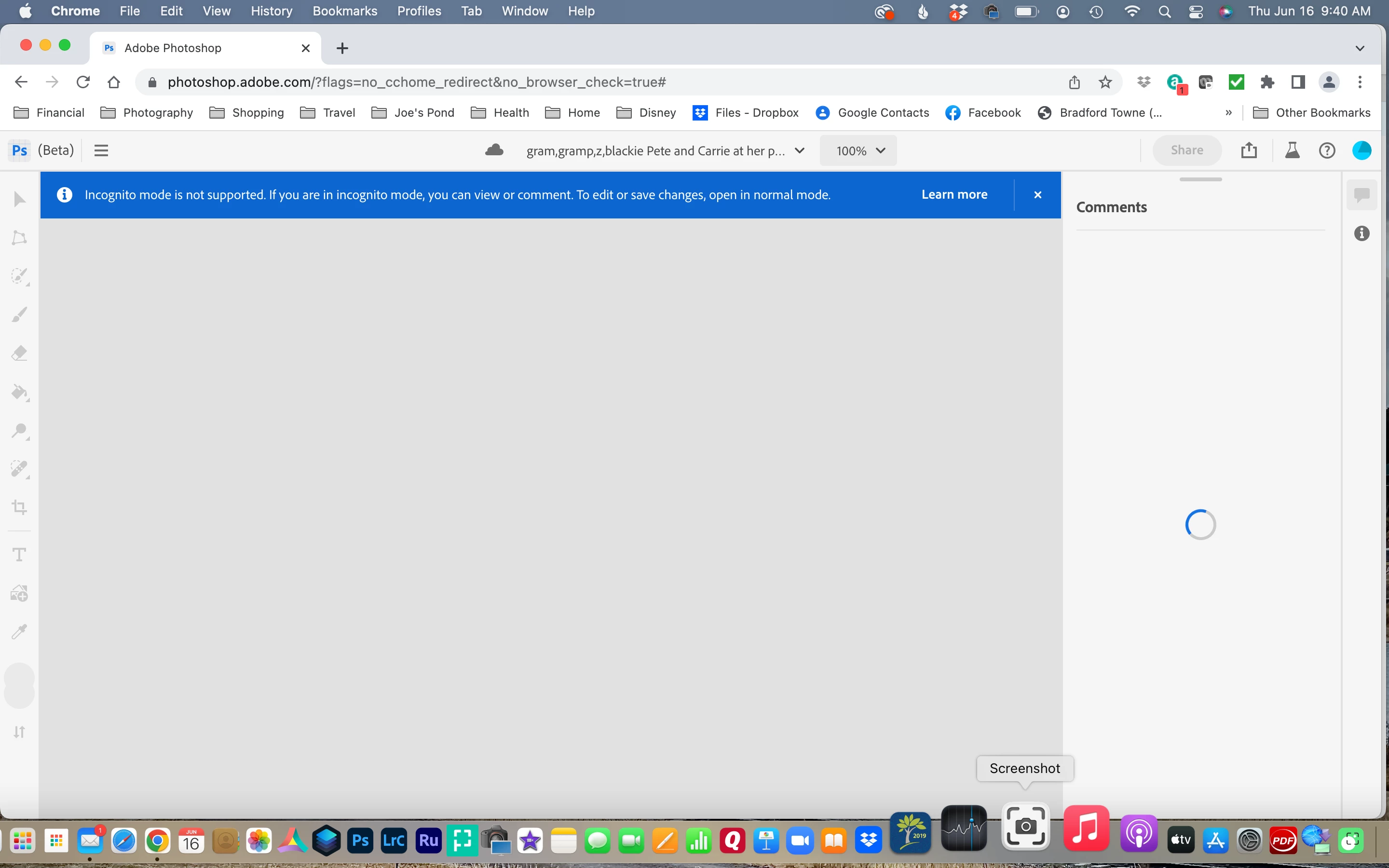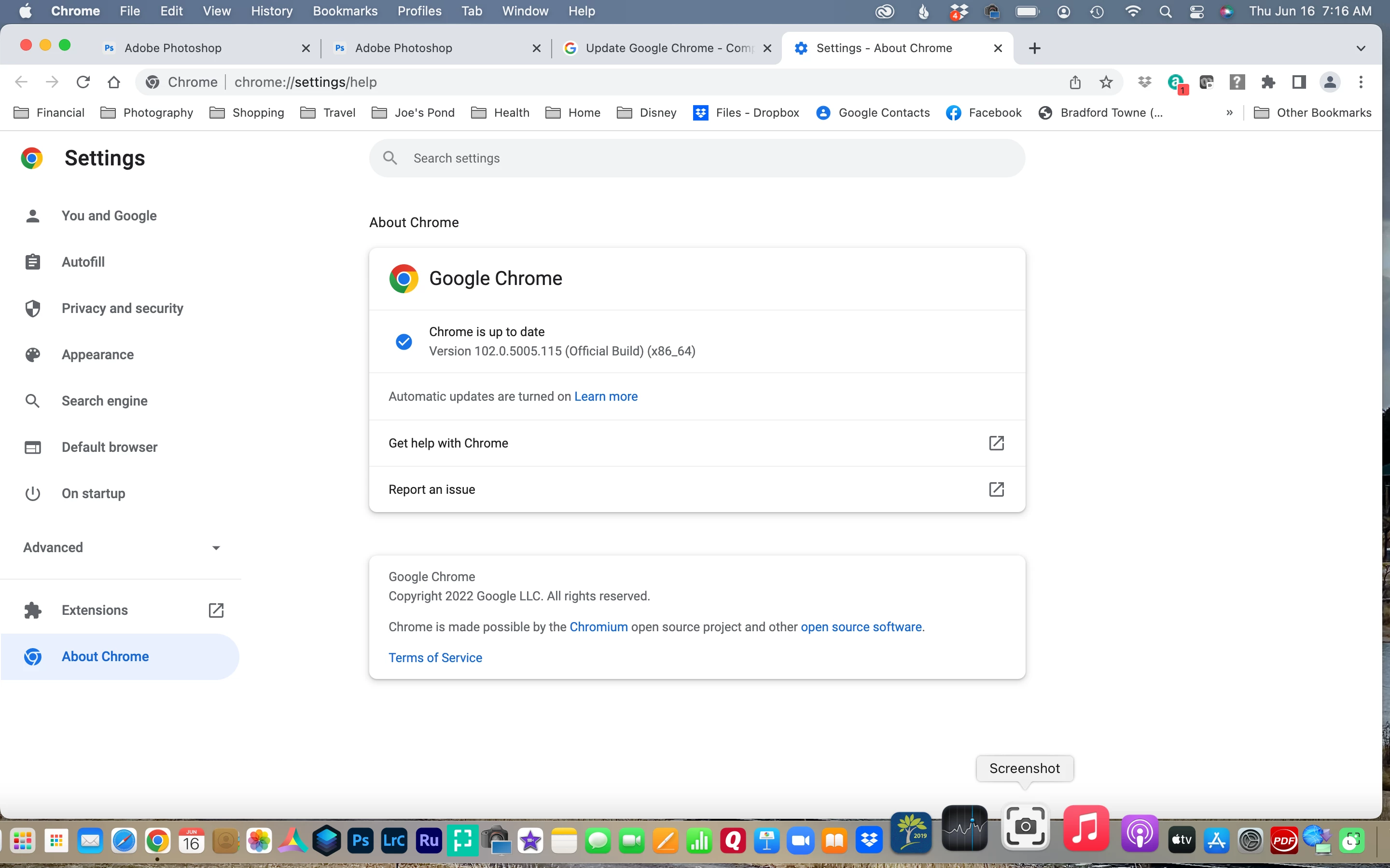 when I try to open photoshop for the web on my mac pro using chrome Version 102.0.5005.115 (Official Build) (x86_64) and Mac OS monterey 12.4 a window pops up telling me to use chrom or microsoft edge.
