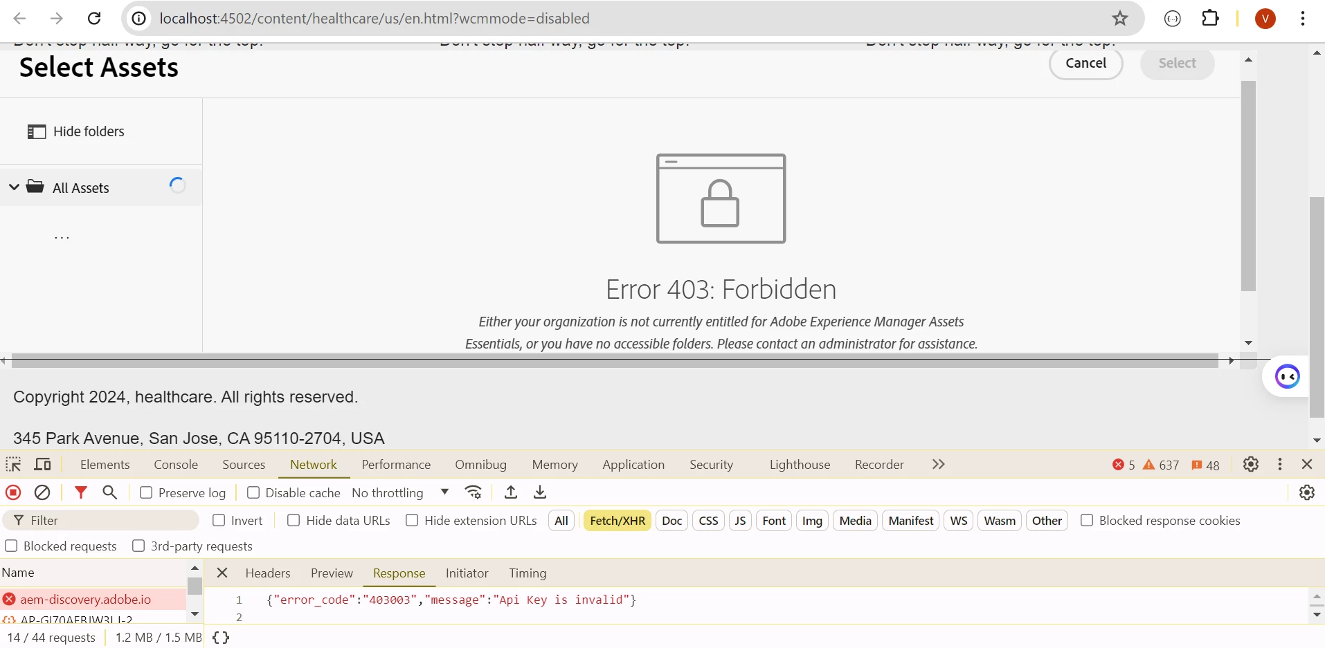 blocked in integrating micro frontend asset selector with AEM local environment