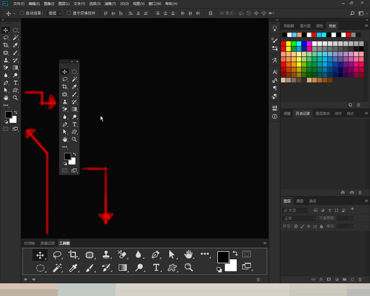01. First of all, I hope officials can add the function of changing the position of the toolbar besides keeping the classic toolbar function of magnetic sticking on the left side of the toolbar. If the toolbar can be docked in the form of tabs below the software window, I think it will be more consistent with the user's visual habits, and now the monitor is mostly widescreen, if the toolbar can only be adsorbed docked on the left, Large-size images, for primary, as well as intermediate software users will be quite difficult. Because whenever you need to replace the tool to deal with the picture when you need to shake his head from left to right, it will slow down the efficiency, if you can retain the original toolbar docking function, based on the bottom of the "tab" style toolbar, which It will make software users feel more relaxed, so that more energy into the processing and processing of pictures, indulge in creativity in Photoshop. The suggested sketch is as follows