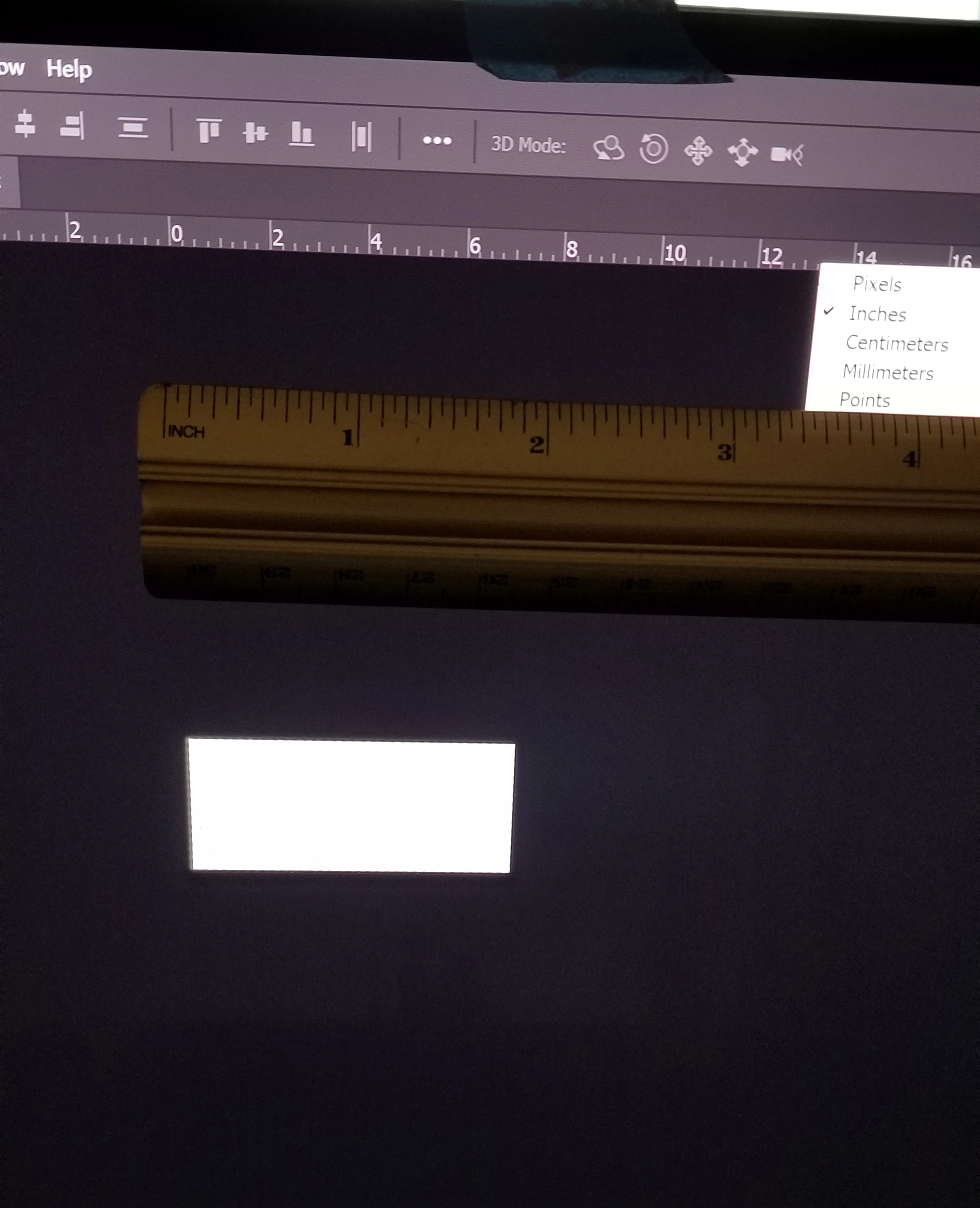 When I open/create images to edit them, the size is not accurate. Even when I have 100% view selected, the final image (after export to PNG/JPEG) is significantly larger. You'll see I'm holding up a ruler to my screen to show the innacuracies in Photoshop's inches vs. real inches.