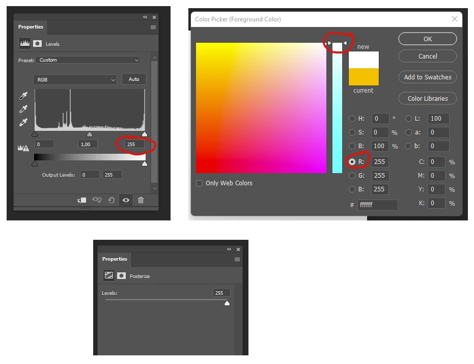 But if I create a 16-bit file with 1000x1000 pixels and pass the gradient from white to black, it's impossible to measure the colors, since all tools continue to work at 256 levels only.