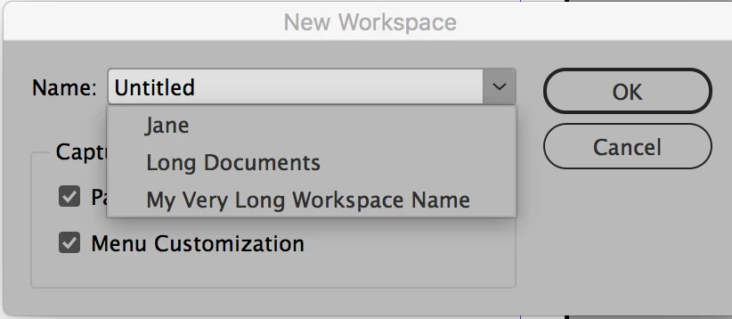2. Workspaces. Allow workspace tweaks to be saved. On one hand you allow reset, and on the other hand you allow overwriting, but you make the path there harder than it has to be. Shouldn't require users to type the workspace name perfectly to the character to edit/overwrite the workspace. At least Illustrator allows managing workspaces, but both apps should make saving workspace updates EASIER, as easy as resetting them.