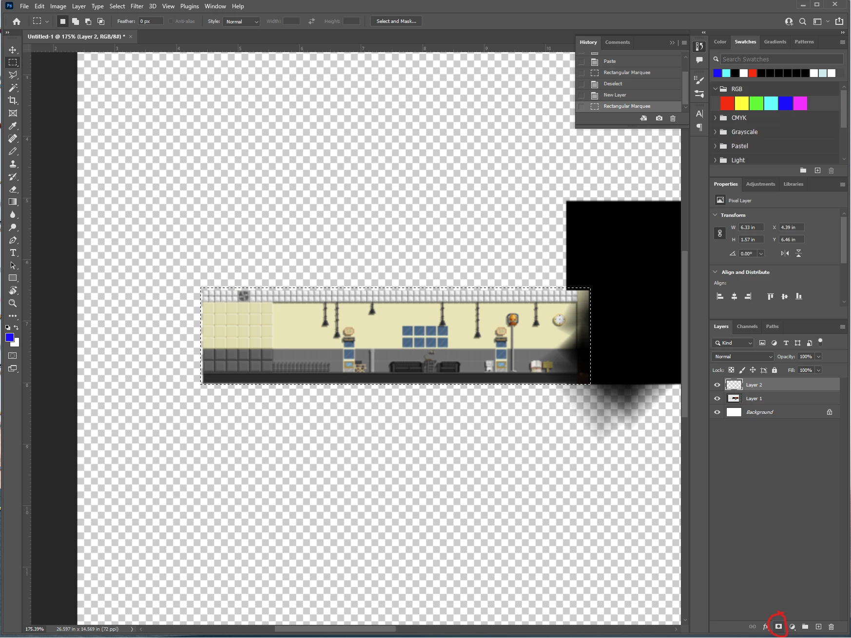 2. Select your Marquee tool and select the area where you want the gradient to show for your first room. It doesn't have to be perfect as you can refine this later.