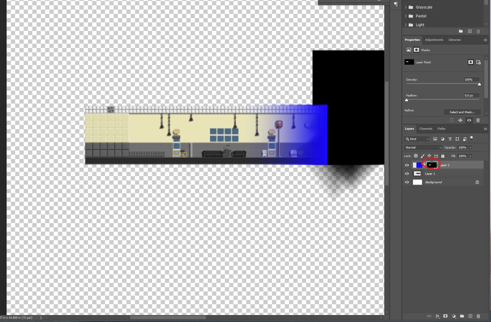 4. Click on your layer to select it and sdd your gradient to the first room like we did before. you can redraw the gradient to get it looking how you want.