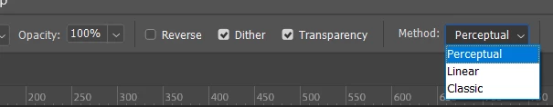 It is default set to Perceptual; you can try changing it to Linear or Classic for different results.