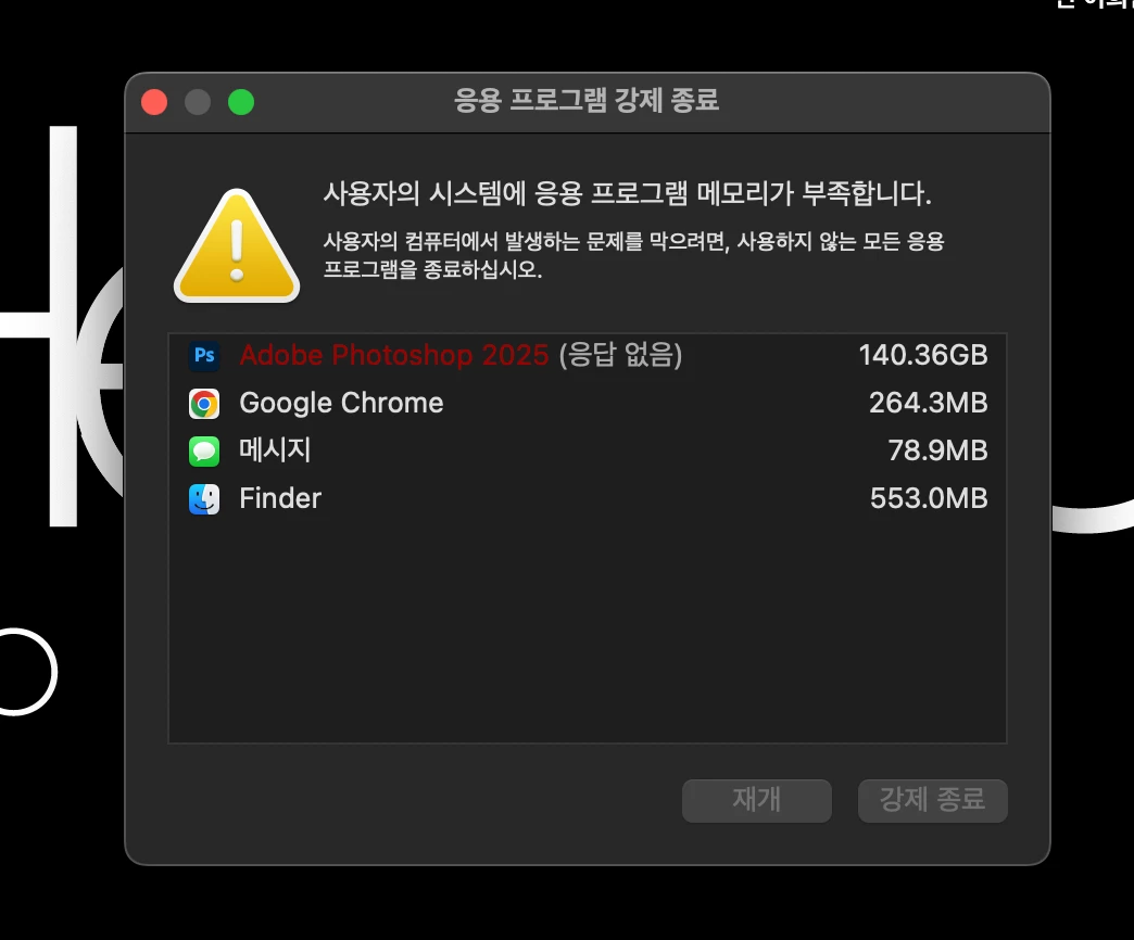2024-25 포토샵 이용시 램 사용량 증가가 되는 이유 아시는 분?