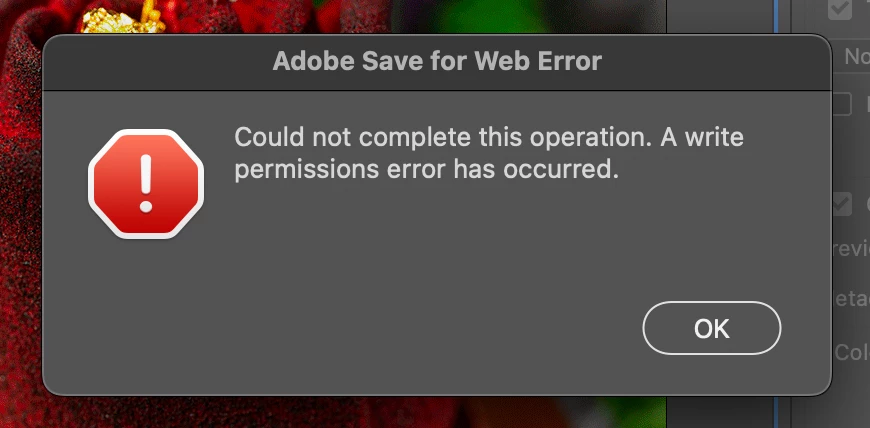 This has been an ongoing problem for weeks and it's really butchering my workflow. Whenever I try to save a .gif to any location on my mac, I get a "Save for Web Error" pop up and not sure why. Recently I updated all of my Adobe programs + restarted my computer and I guess it's still bugging. I have the same legacy settings for gif-ing on my personal mac and have no problems exporting but for the current mac I'm using it's being weird