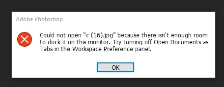 I've just noticed that some image files cause to stop the Action automation due to the error: Could not open because there isn't enough room to dock it on this monitor.