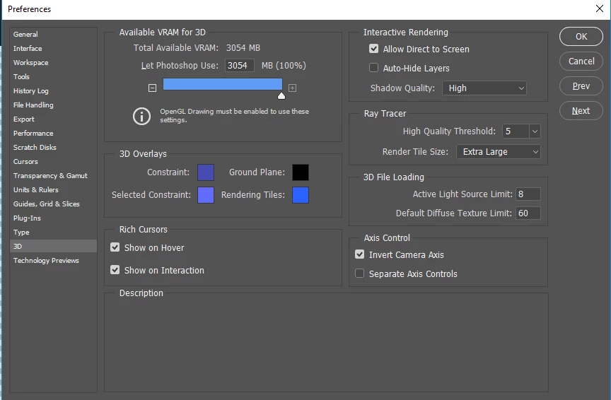 3D Options all Greyed out in Photoshop CC 2017