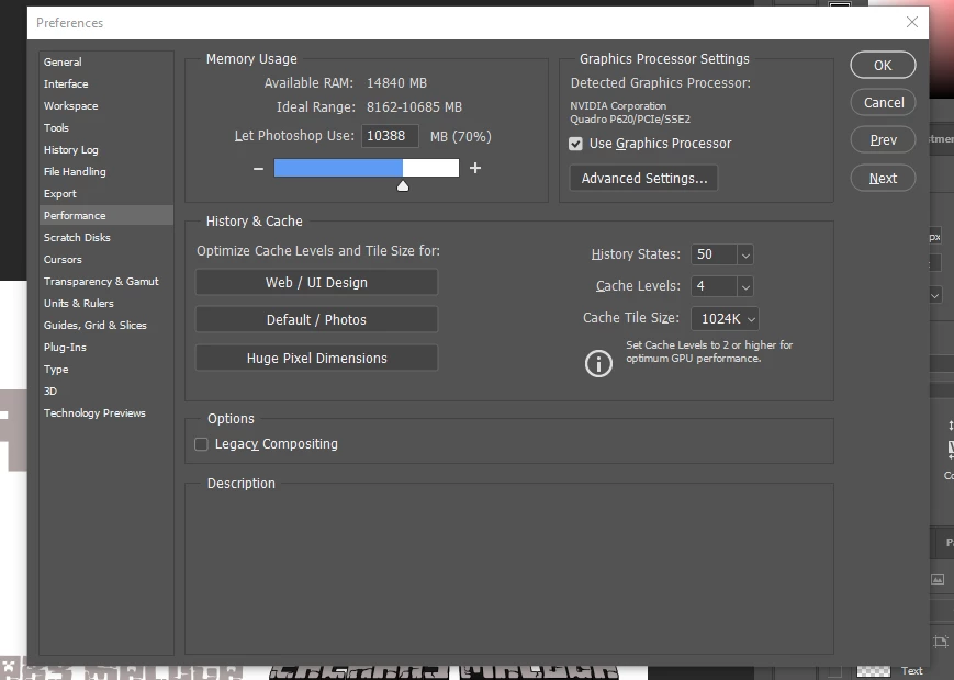 Memory used by Photoshop: 70 %